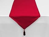 | ✚✚✚ Chemin de table ALIX rouge CHEMIN DE TABLE UNI, FINITIONS POMPONS. DIMENSIONS: 40X140 CM COMPOSITION: 100% POLYESTER