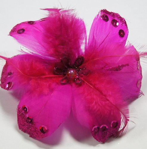 Fleur paillettes en plume-fushia