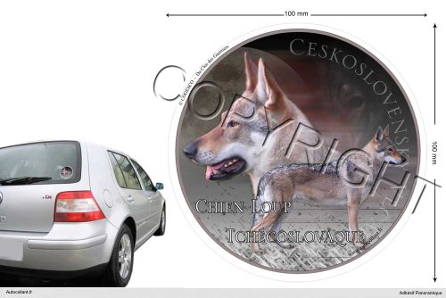 Autocollant chien circulaire 10 Cm Chien-loup-tchecoslovaque?Adhésifs chiens rond prédécoupés pour extérieur Chien-loup-tchecoslovaque . Prédécoupe circulaire du sticker chien de 10 cm. A coller sur voiture, remorque, camping-car, camions et vans.