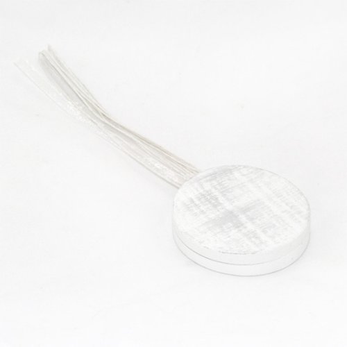 #Cette embrasse aimantée est composée d'un rond en bois peint avec effet patiné. Diamètre du rond 8 cm, longueur totale 54 cm. Couleur blanc.